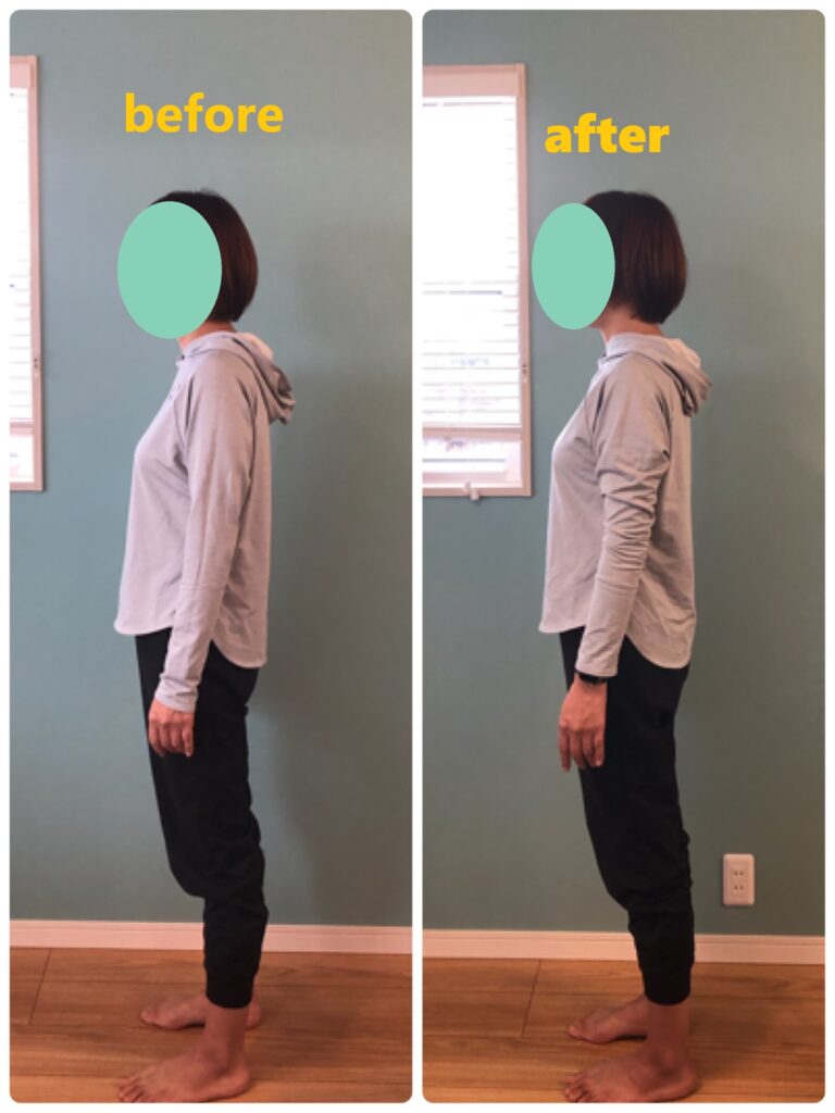 大した動きはしていませんが、頭の位置も良くなり、胸の位置は高くなりバストアップまで。見た目も変わりますね。