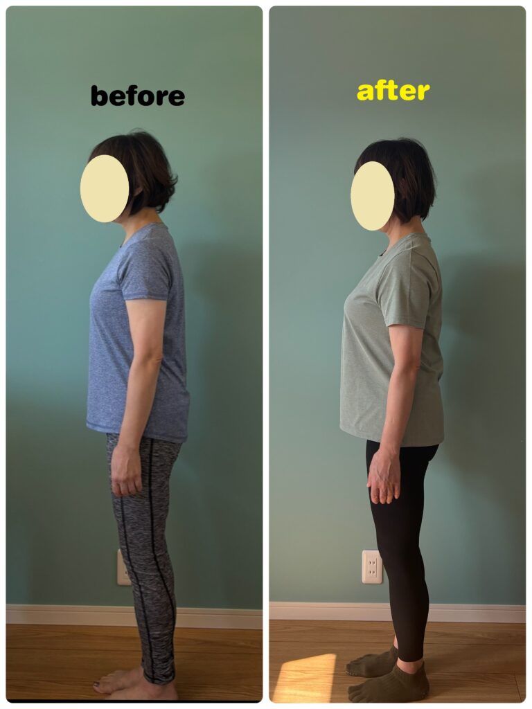 写真を見ても分かるように、丁寧に呼吸を行ったり、背骨を動かす事により、肋骨の形状も変わりお胸の位置も変わります。